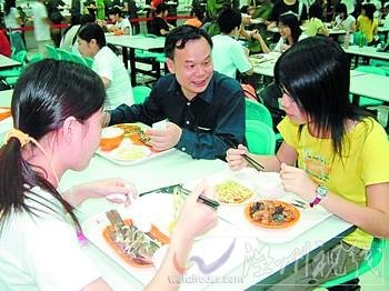 周其鳳常與學生一起在學校食堂進餐,了解各方面情況。 資料照片