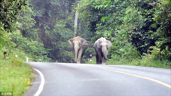 泰國一個(gè)國家公園里,發(fā)生摩托遭大象圍攻的事件,剛好被經(jīng)過的一輛汽車的行車記錄儀拍攝下整個(gè)過程,地點(diǎn)就是在Khao Yai 國家公園,大象圍攻摩托車可能是大象對摩托車發(fā)出的低頻聲音煩躁。