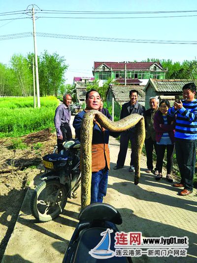 澆田撈出3米大蛇:2017年4月19日,江蘇省灌南縣田樓鎮三莊村有村民澆田撈出3米長大蛇,這條蟒蛇被發現時已經死亡,這條巨蟒從哪里來,死亡原因不清楚。