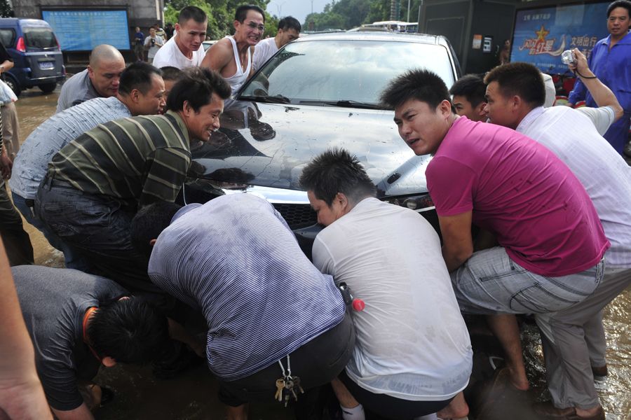 錢塘江觀潮圖片:8月31日下午1時30分許,錢塘江北岸海塘浙江海寧鹽倉段“回頭潮”觀潮點,錢塘江大潮潮水沖上塘壩,正值錢塘江觀潮時間游客最多,錢塘江觀潮最佳地點游客集中,大浪打來逃都不好逃。20余觀潮游客受傷,其中約20人被送往就近長安鎮(zhèn)海寧市第三人民醫(yī)院救治,傷勢較重人員均系人被潮水沖到后撞在石頭上或因人員擁擠互相擠壓所造成骨折。圖為一錢塘江觀潮游客被大浪打來的潮水沖到汽車肚子下面,眾人幫忙抬車救人。