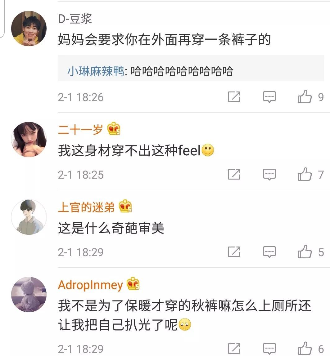 場合歸場合,有網友表示,其實這幾套秋褲看久了竟然還覺得有點好看,從腳連到胸,看起來不僅暖和,還顯腿長;誰不想擁有這樣一條讓人溫暖到心窩的抹胸秋褲呢?