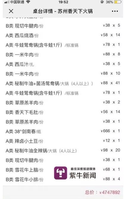 吃火鍋賬單474萬:近日,蘇州的吳女士和朋友們在一家連鎖火鍋店就餐,吃飯過程中卻發現沒點過的菜接二連三地被端上來。原來是點菜二維碼原因,最終這份“賬單”增加到了474萬的驚人金額。