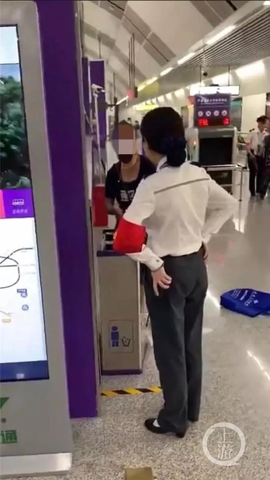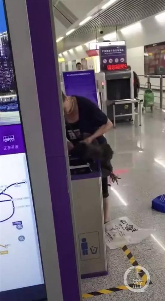 大約8秒鐘過后,站務人員離開了視頻區域,黑衣大媽則開始進行殺雞。而在視頻拍攝過程中,一塊電子顯示牌下方露出了“CRT重慶軌道交通”的LOGO。