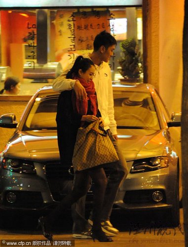 2010年5月11日訊,北京,因“翟凌門”火速走紅的翟凌近日被拍到密約高大帥氣的八一籃球隊員張博。
