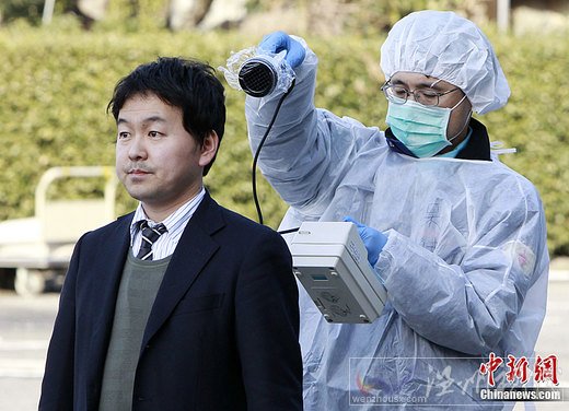 日本核泄漏危機13日傳出進一步擴大的消息。日本原子能安全保安院13日稱,福島第一核電站目前面臨新的問題,該電站第三反應堆緊急冷卻系統失靈,可能發生爆炸,急需采取冷卻措施。圖為日本福島縣郡山民眾接受輻射水平檢測。