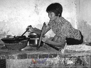 任少云家的灶臺比一般的農家灶臺要大半平方米,大出的灶臺上鋪著一個編織墊。她爬上灶臺坐在編織墊上,面前是一口炒鍋。“你看,我就是這樣坐在鍋邊做飯的。”任少云拿著鍋鏟給記者比畫著說。