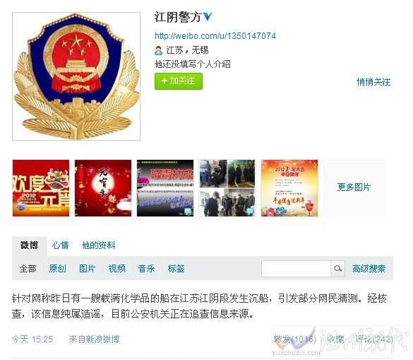 記者今天下午登錄江陰警方的官方微博,上面已有正式回應:“針對網稱昨日有一艘載滿化學品的船在江蘇江陰段發生沉船,引發部分網民猜測。經核查,該信息純屬造謠,目前公安機關正在追查信息來源。”