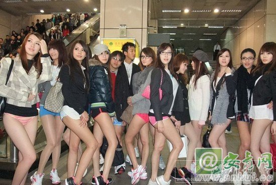 近日,臺灣無褲日席卷網絡,成為眾多網站報紙的頭條新聞。20名身材火辣的少女身著內褲,乘坐臺北捷運板南線引起了人們的關注。據悉此次無褲日活動,是為了將低碳生活的環保理念推廣到臺灣。