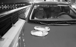 在知情人的指引下,記者找到了停放在橋面上的跳湖者的汽車,是一輛紅色的轎車,車引擎蓋上留有一雙女式的鞋子,汽車的副駕駛座上留有女式包、手機、便簽本等物。在便簽本上,寫著:自己明白,發生了這么多的事,我難以承受,只恨我自己太傻,太容易相信人,是我命不好,我只恨我自己……