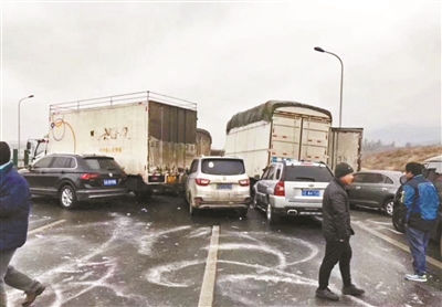現(xiàn)場司機王先生告訴北青報記者,當(dāng)天早晨6點多,他駕車從安寧市前往昆明,車輛開到碧雞關(guān)隧道前1公里左右的路段時,突然發(fā)現(xiàn)前方路面上停了許多車,“看上去應(yīng)該是發(fā)生了事故,我趕緊踩剎車,但是發(fā)現(xiàn)車已經(jīng)很難停住,一下子踩下去車就有側(cè)滑的傾向,我就只能點著踩剎車,然后控制方向,在距離前方事故車輛幾十米的地方把車停下了。”王先生說,“因為知道道路比較濕滑,所以我的速度一直開得比較慢,但是停下來的時候還是滑行了挺長的距離,車停下來之后我下車查看情況,發(fā)現(xiàn)前面已經(jīng)有十幾輛車相撞了。”