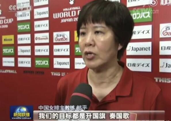 2019年女排世界杯正在日本進行輪番比賽。在14日中國首戰對戰韓國3:0勝利后,曾7次征戰世界杯的女排主帥郎平表示:“只要穿上帶有中國的球衣,就是代表祖國出征出戰,為國爭光是我們的義務和我們的使命,我們的目標都是升國旗、奏國歌。”這番話也登上了當晚的《新聞聯播》,并被網友刷屏。