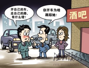 5月13日深夜,瑞安的柯小姐開著寶馬車,從瑞安莘塍出發前往虹橋北路的"相約酒吧"。沒開多久,她從后視鏡中看到,有一輛寶馬車,似乎一直跟著她。柯小姐起先沒在意,但這輛車始終咬著不放,這讓她感覺有點不對勁。她從后視鏡中隱約看到,開車的是名陌生男子。