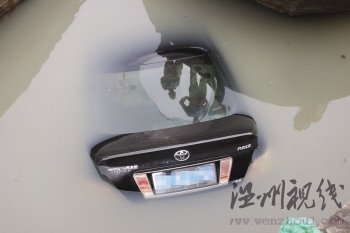 | 女司機(jī)被救出后,轎車(chē)慢慢沉入河里 |