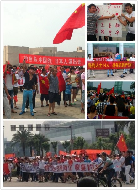 溫州市民的愛國熱情被激發了,拉上橫幅在世紀廣場和市政府前舉行小型的游行示威活動。橫幅上有寫“狗日的滾出中國,打到美日帝國主義”,“捍衛釣魚島,全民抵制日貨”,“打倒小日本,還我釣魚島”等等標語,可見溫州人的愛國熱情還是很高的。