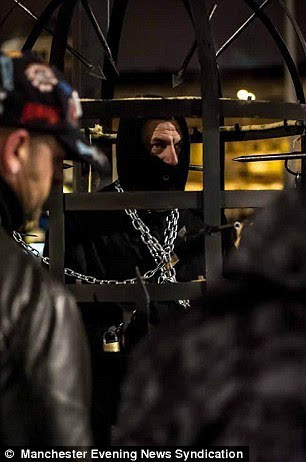 逃生大師表演失敗:圖為安東尼表演火籠逃生成功了。