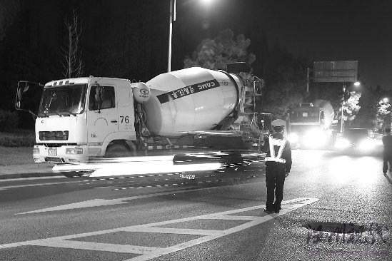 交警夜查工程車。