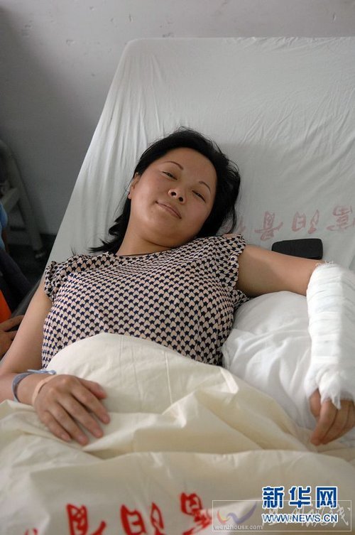在病床上,吳菊萍向記者講述起當時驚險的一幕時,只微笑著淡淡說了一句――“這是本能,是一個母親應該做的事情。”