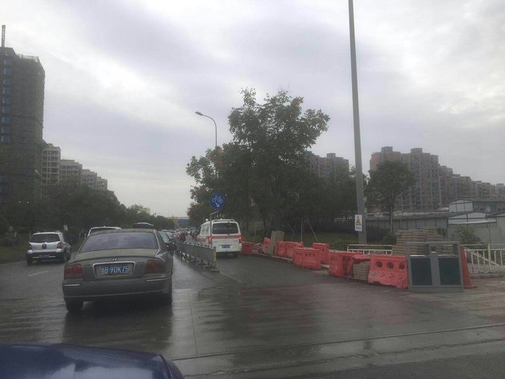 現場交通擁堵,120救護車一輛接一輛趕往現場。救護車走非機動車道進去的。