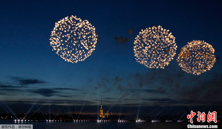 圣彼得堡紅帆節煙花燦爛精美圖片。2011年6月19日,俄羅斯圣彼得堡涅瓦河畔,人們參加“紅帆節”,觀看煙花表演。“紅帆節”是一年一度的慶祝中學畢業生的節日。每年夏至白晝前最后一個周五的夜晚,圣彼得堡都會舉辦“紅帆節”,俄羅斯紅帆節是為了讓所有的中學畢業生告別少年,在黎明來臨之際迎接人生新的階段。圣彼得堡紅帆節真是浪漫的節日,一個多么朝陽和美好回憶的節日,煙花燦爛,紅帆象征著生命旅途一帆風順,很美,很詩意的節日。