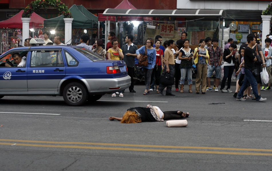 金發(fā)女子橫臥街頭圖片:“這女的怎么躺在馬路上,是不是被車(chē)撞了?”22日晚上7點(diǎn),記者在青島延安二路臺(tái)東車(chē)站看到,一名金發(fā)女橫臥街頭,不知何故裙子也已經(jīng)掀到腰部。在車(chē)站等車(chē)的市民孫女士告訴記者:“半小時(shí)前,這名女子徒步走到車(chē)站后就倒地不起,熱心市民撥打120后,來(lái)了兩輛救護(hù)車(chē),但是女子就是不肯起來(lái)?!?3日上午,記者在附近商鋪了解到,這名金發(fā)女子經(jīng)勸說(shuō)后離開(kāi)現(xiàn)場(chǎng)。