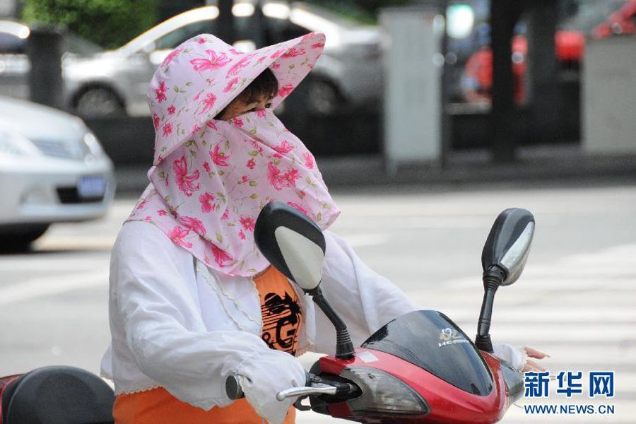 2011秋老虎很兇猛,近日,全國(guó)多個(gè)地區(qū)持續(xù)高溫天氣,“秋老虎”天氣強(qiáng)度偏強(qiáng),長(zhǎng)沙,成都、青島、重慶、武漢、福州等地都出現(xiàn)連續(xù)多日高溫。圖為近日,福州-我市遭遇秋老虎,福州的一位騎車(chē)人裹得嚴(yán)嚴(yán)實(shí)實(shí)出行。各地新聞報(bào)到都出現(xiàn):我市遭遇秋老虎,2011秋老虎什么時(shí)候結(jié)束還很難說(shuō),這段時(shí)間正是最熱的時(shí)候。