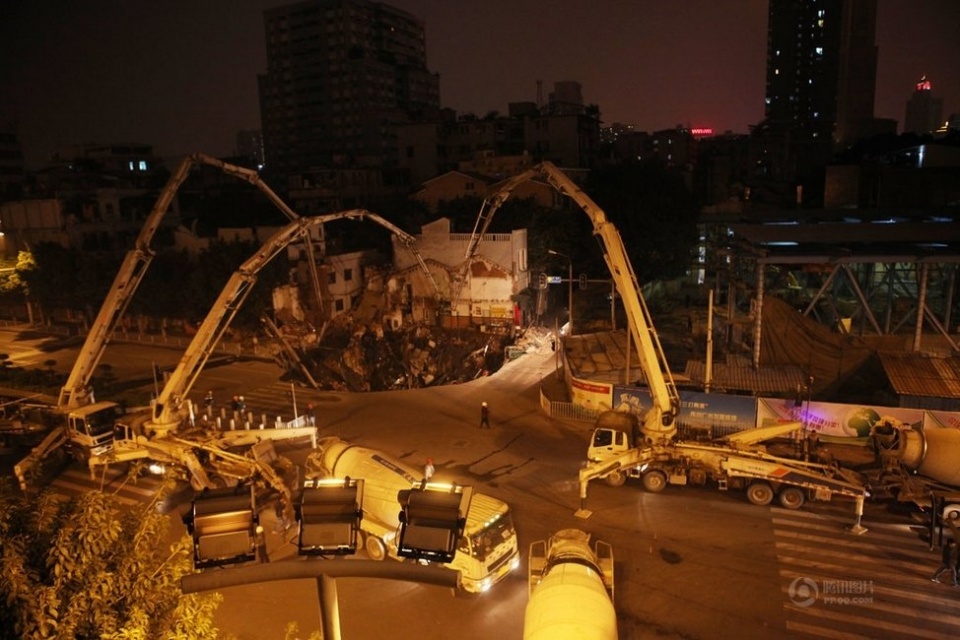 廣州康王路地陷高清圖片 2013年1月28日廣州鬧市康王路突發地陷