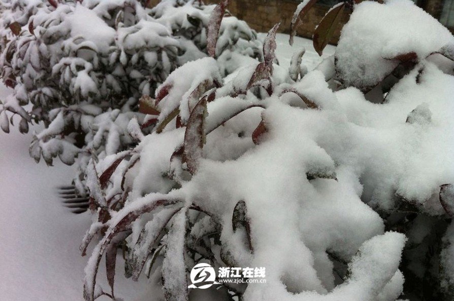 湖州安吉縣下雪了,在海拔較高的安吉縣報福、章村、天荒坪等山區積雪最厚有10公分。