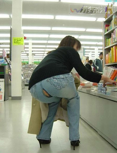 牛仔褲太緊了,沒(méi)有想到在大庭廣眾之下發(fā)生意外,美女的臀部太豐滿還是牛仔褲太緊了?太