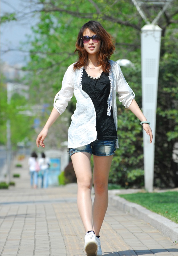 美女的誘惑只要露出美腿,就足以讓人心馳神往,正所謂美腿如玉,加上性感熱褲,誘惑不止一點點!