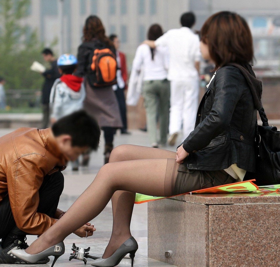 美腿黑絲美女在廣場放風箏(美腿系列七)