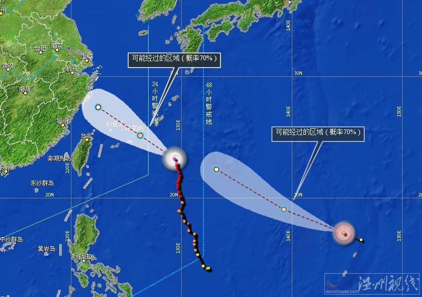 雙臺風最新路徑 隨著第24號臺風的生成,現在西太平洋上的雙臺風“菲特”和“丹娜絲”一前一后的向沿海靠近。