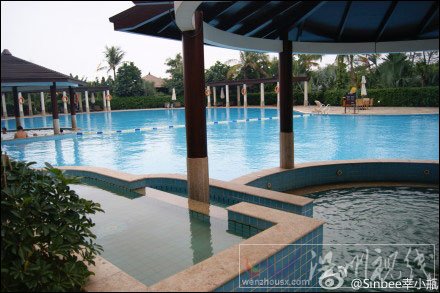 由于氣溫較低,海口游泳池內(nèi)人員稀少,大部分人都改泡溫泉。(圖片來(lái)源:新浪微博)