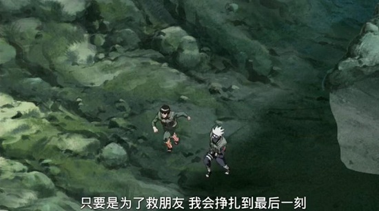 畫面回到了現(xiàn)在,卡卡西眼睛受傷看不見還是和凱一起往前沖,他說:看不見可以聽見,再不行還有嗅覺和觸覺,只要是為了救朋友,我會掙扎到最后一刻......